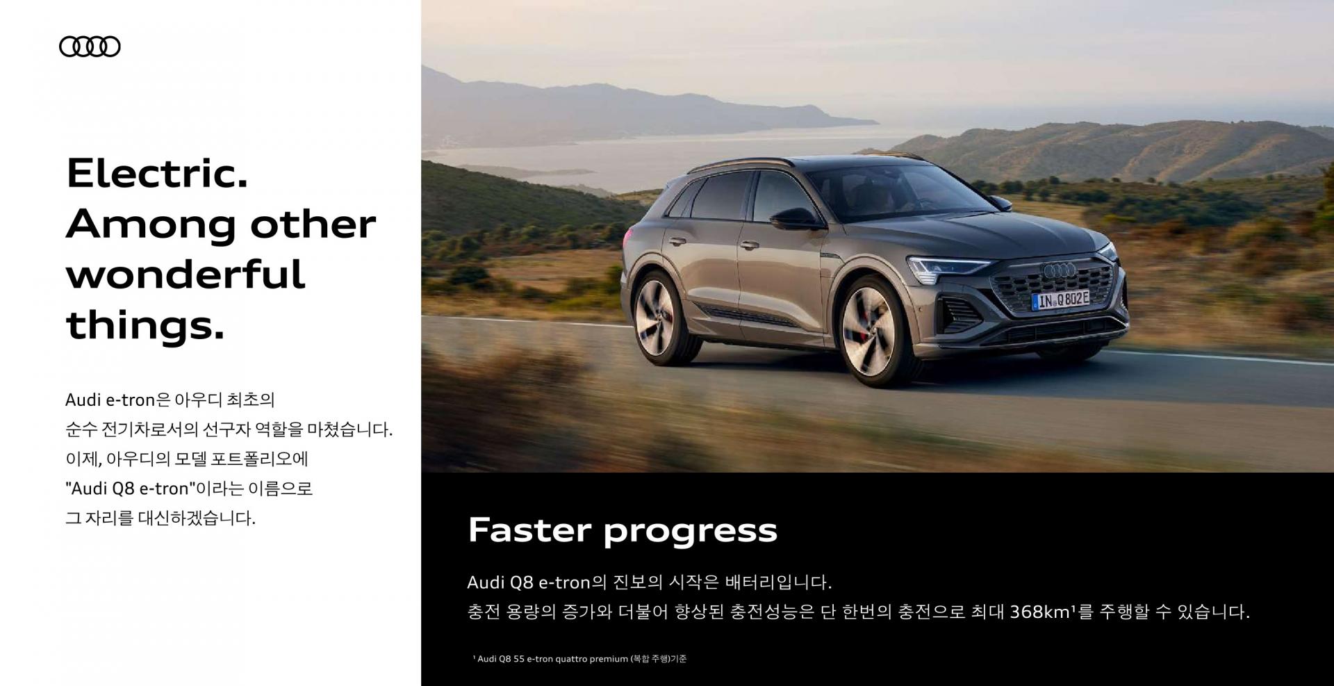 검색어 : #SQ8 #Sportback #SQ8Sportback #e-tron #quattro #etron #quattroetron #에스큐8 #에스큐팔 #에스큐에잇 #스포트백 #이트론 #콰트론 #콰르로이트론 #아우디 #Audi #AudiLife #AudiLovers #AudiExperience #럭셔리카 #프리미엄자동차 #독일명차 #첨단기술 #진보된기술 #스포티한주행 #AudiSport #아우디로드트립 #퍼포먼스카 #드라이빙의즐거움 #ev #electilc #전기 #전기차 #순수전기 #모터 #motor #Battery #배터리 #lithiumion #리튬이온 #전기자동차 #ElectricVehicle #ElectricCar #친환경자동차 #GreenEnergy #SustainableFuture #SUV #SUV차량 #SUV자동차 #SUV라이프 #SportUtilityVehicle #패밀리카 #넓은공간 #레저용차량 #안전한차량 #오프로드 #SUV캠핑 #차박 #로드트립 #SUV여행 #자연속드라이브 #4륜구동 #대형 #대형SUV