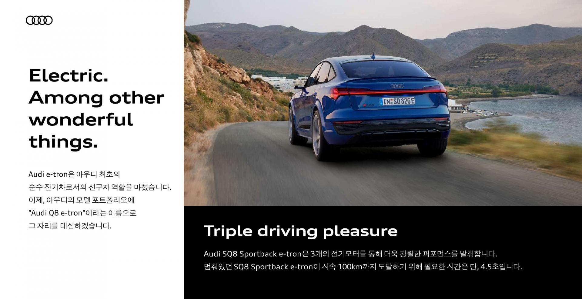 검색어 : #Q8 #Sportback #etron #Q8 #Sportback #etron #55 #quattroetron #quattro #Premium #Premiumetron #큐팔 #큐에잇 #큐8 #스포트백 #이트론 #콰트로 #프리미엄 #아우디 #Audi #AudiLife #AudiLovers #AudiExperience #럭셔리카 #프리미엄자동차 #독일명차 #첨단기술 #진보된기술 #스포티한주행 #AudiSport #아우디로드트립 #퍼포먼스카 #드라이빙의즐거움 #ev #electilc #전기 #전기차 #순수전기 #모터 #motor #Battery #배터리 #lithiumion #리튬이온 #전기자동차 #ElectricVehicle #ElectricCar #친환경자동차 #GreenEnergy #SustainableFuture #SUV #SUV차량 #SUV자동차 #SUV라이프 #SportUtilityVehicle #패밀리카 #넓은공간 #레저용차량 #안전한차량 #오프로드 #SUV캠핑 #차박 #로드트립 #SUV여행 #자연속드라이브 #4륜구동 #대형 #대형SUV